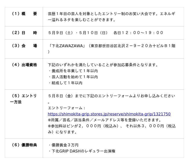 株式会社京王SCクリエイション(本社:東京都渋谷区、代表取締役社長:小堺 健司、以下:京王SCクリエイション)は、しもきた商店街振興組合(理事長:長沼 洋一郎)並びに下北沢で入場無料のお笑いライブ「下北GRIP」を運営する合同会社下北GRIP(本社:東京都世田谷区、代表:和田 祐、以下:下北GRIP)が5月7日(木)~5月10日(日)で開催する、実験型お笑い&音楽ライブフェス『下北www.2026』において、会場の協力をいたします。京王SCクリエイションが運営する京王井の頭線下北沢駅の高架下施設「ミカン下北」の大階段や店舗内、屋上など様々な場所が実験的に会場となります。他にも、「下北GRIP」の劇場「下北ZAWAZAWA」にて、芸歴1年目の芸人を対象としたお笑い大会「スタートダッシュ!」を実施するほか、街の環境美化を目的とした『ゴミ喜利王』、街中の喫煙所にて芸人の動画放映も行うなど、地域貢献をテーマとした企画も各所で実施いたします。