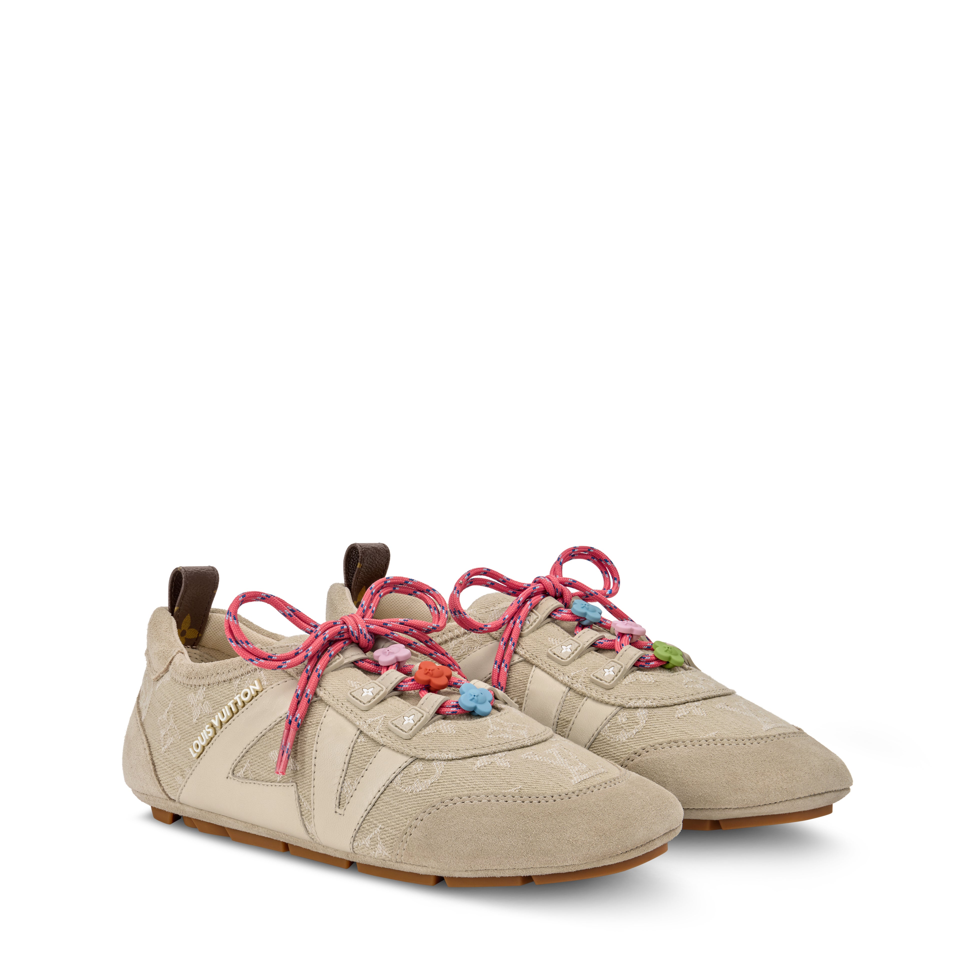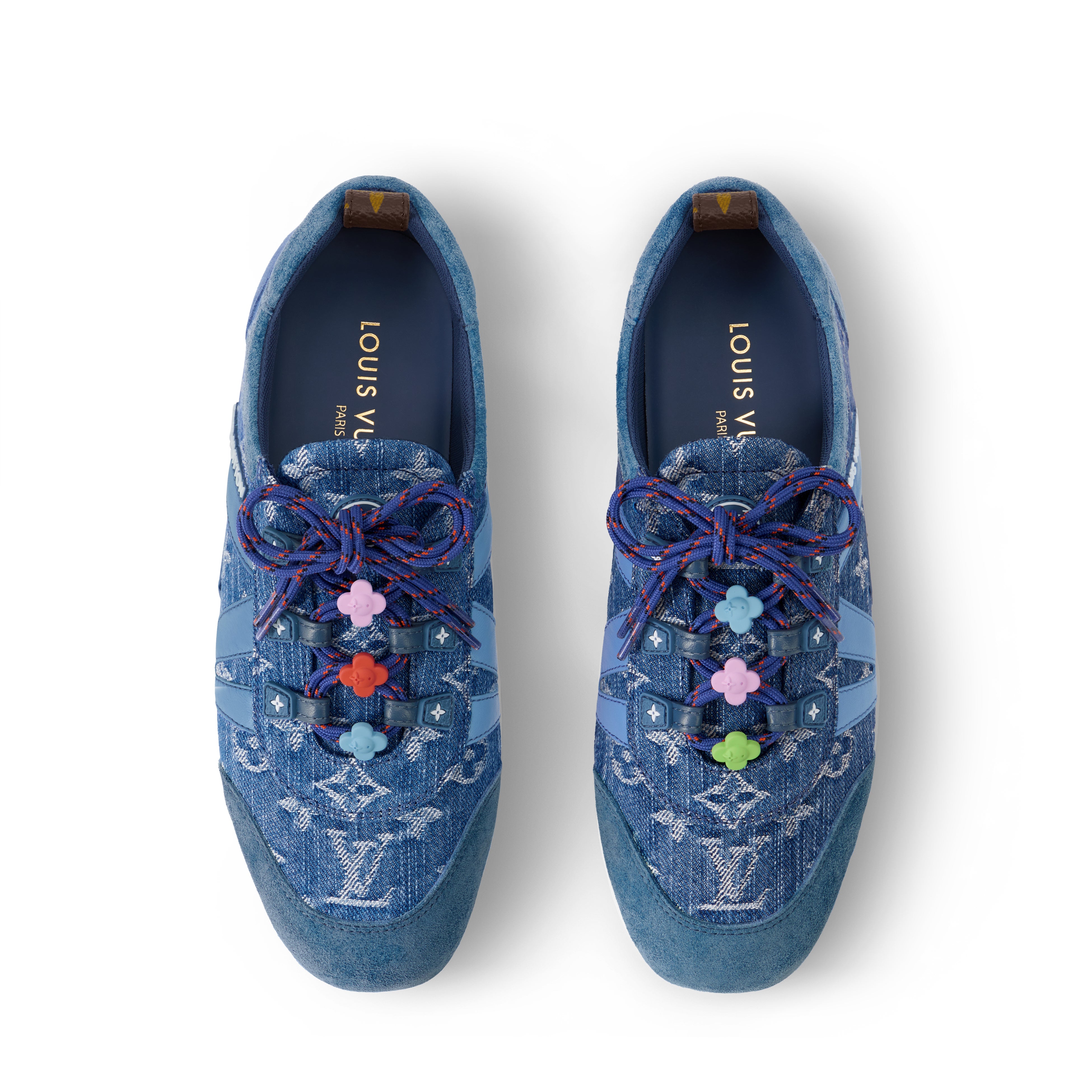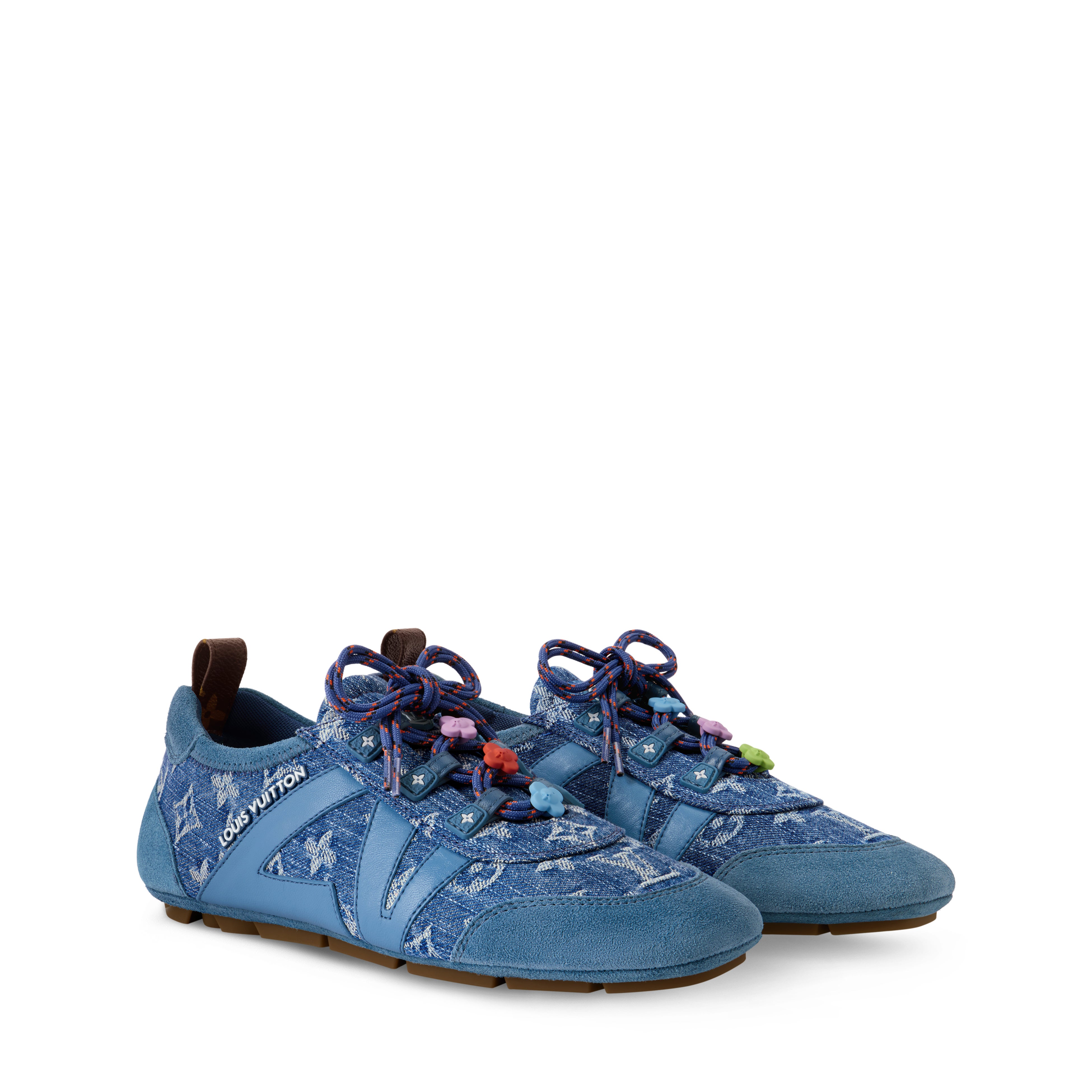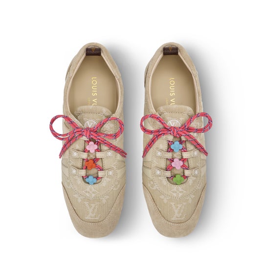 モノグラム・デニムに同系色のスエードカーフレザーのトリミングを組み合わせた夏らしい「LV スニーカリーナ」。遊び心溢れるアクセントとして、ダブルのシューレースに鮮やかなモノグラム・フラワーのチャームをあしらっています。サイドにダイナミックな「LV」やラバー製「Louis Vuitton」シグネチャーなどのキーディテールを施し、トレンドのスタイルに仕上げました。