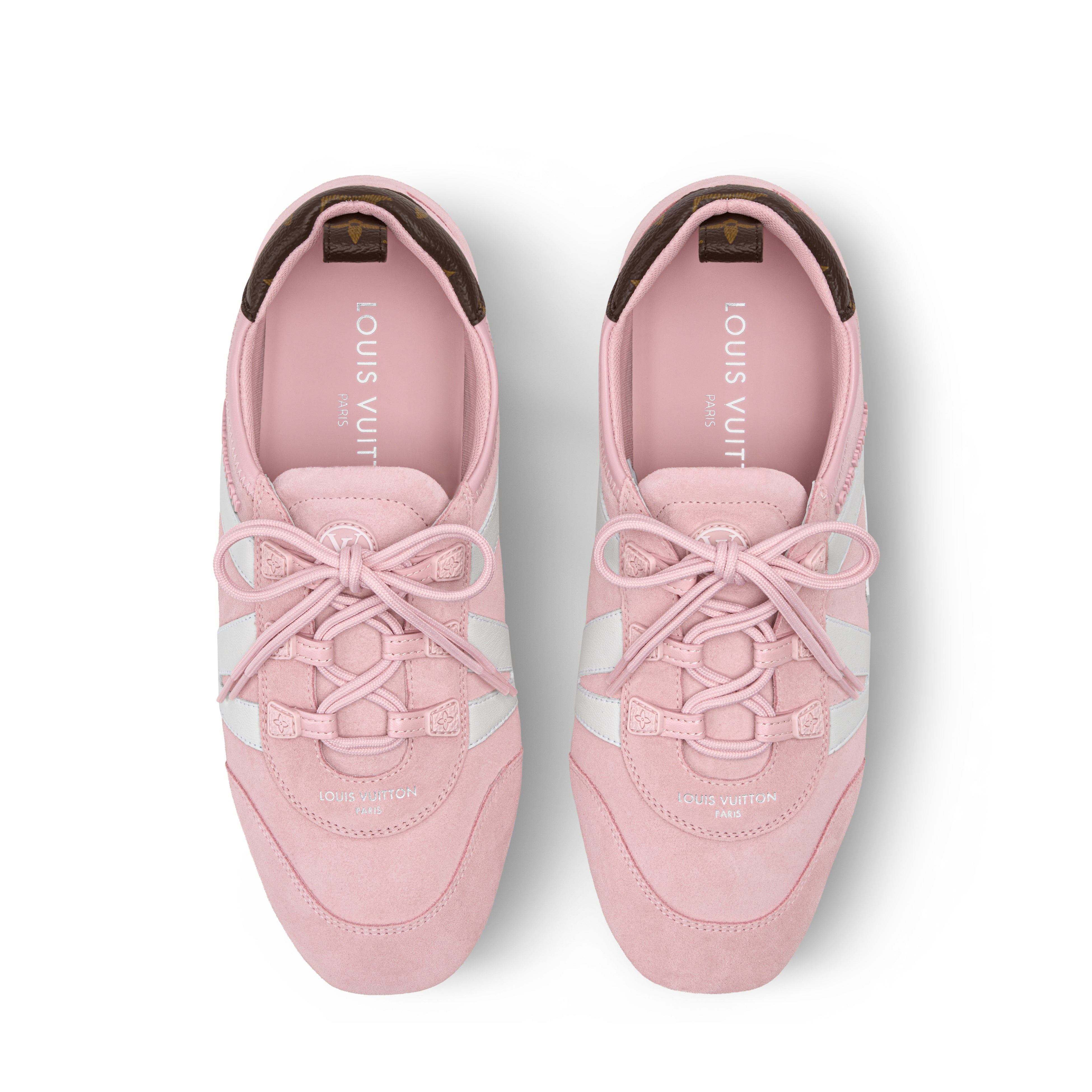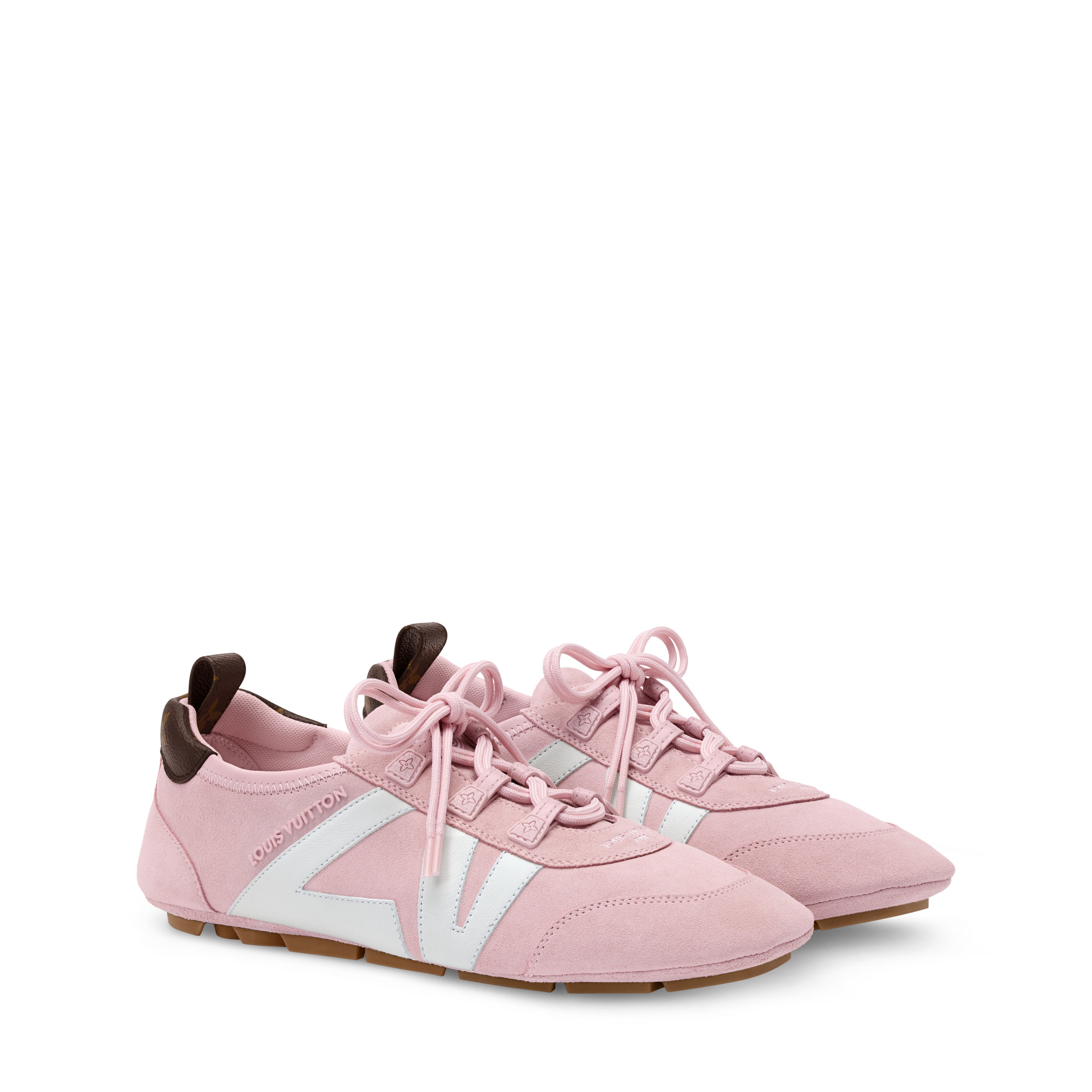 ベルベットのようにしなやかなスエードレザーで再解釈した「LV スニーカーリーナ」。アッパーには同系色のシューレース、サイドにはコントラストカラーの「LV」シグネチャー、背面にはモノグラム・キャンバスのトリミングをあしらいました。スニーカーの快適さとバレエシューズの機能性を兼ね備えたこの軽量で柔軟性に優れた本モデルは、フレキシブルなラバーアウトソールで仕上げられています。
