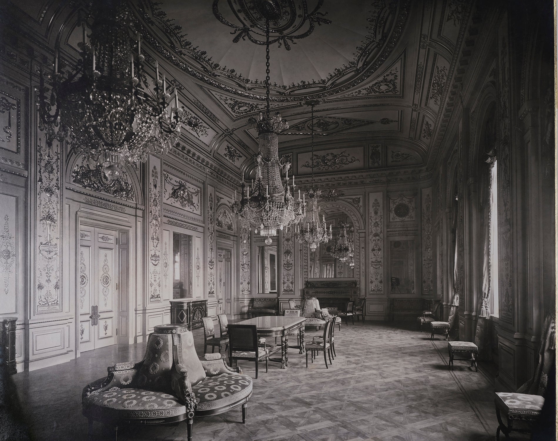 東宮御所の竣工時のようすを写真師・小川一真が撮影。本展では東宮御所で実際に使用された家具もあわせて展示!