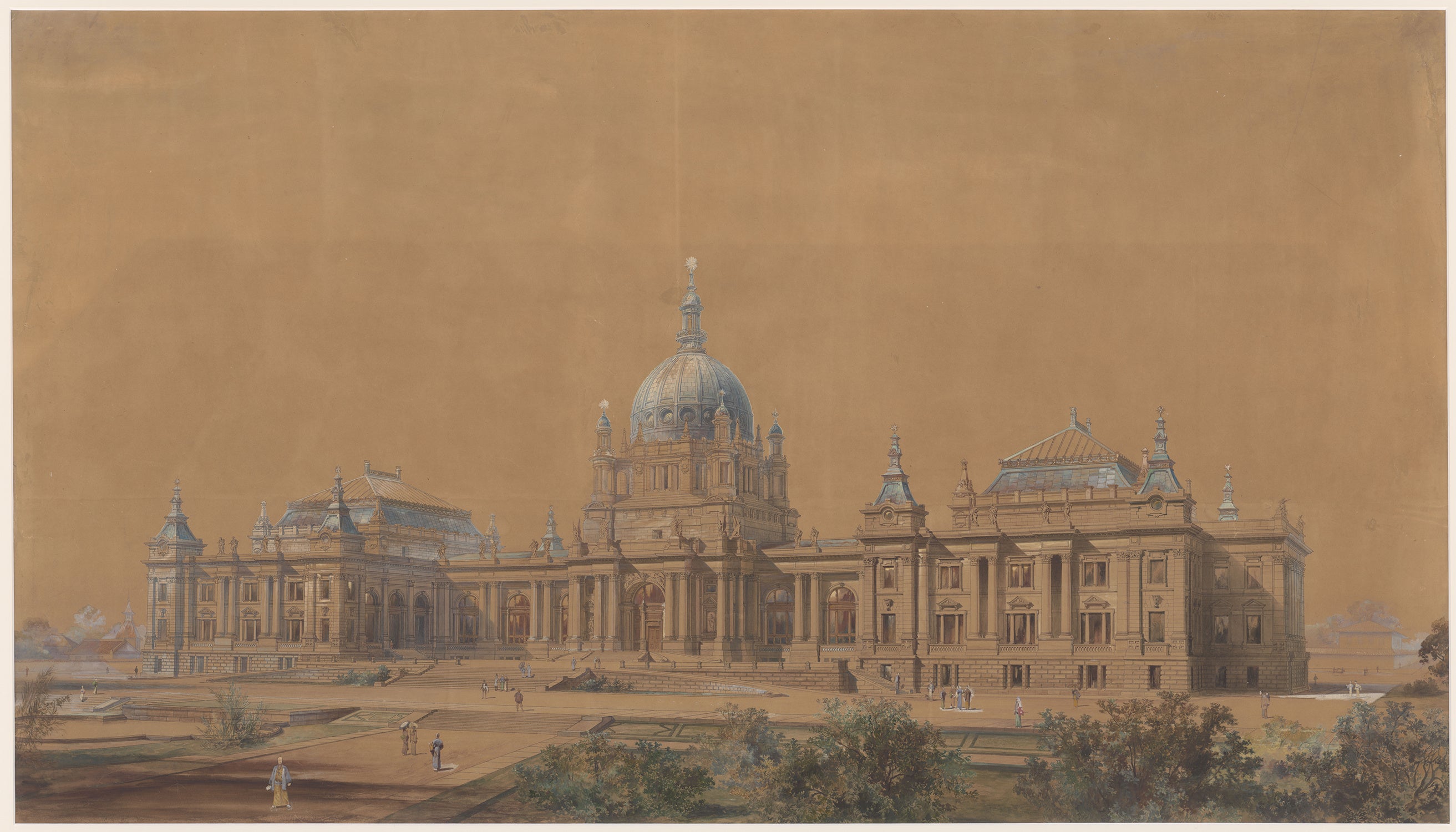 「国会議事堂案 外観透視図」エンデ&ベックマン/作 1887-8年(明治20-21)頃 ベルリン工科大学建築博物館蔵 Architekturmuseum der Technischen Universitat Berlin, Inv. Nr.20190