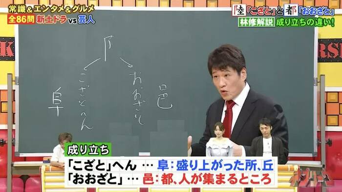 漢字の部首の名前を答える問題では、林先生が「おおざと」と「こざとへん」の成り立ちの違いも教えてくれました。