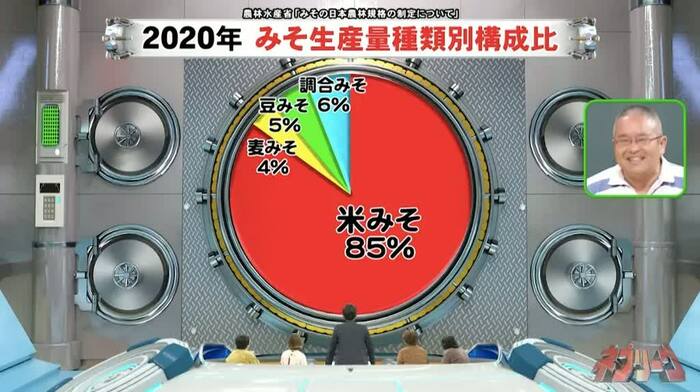 実は日本で作られている味噌の種類は、米味噌。2020年の調査では、味噌の生産量の85%を米味噌が占めていることがわかります。