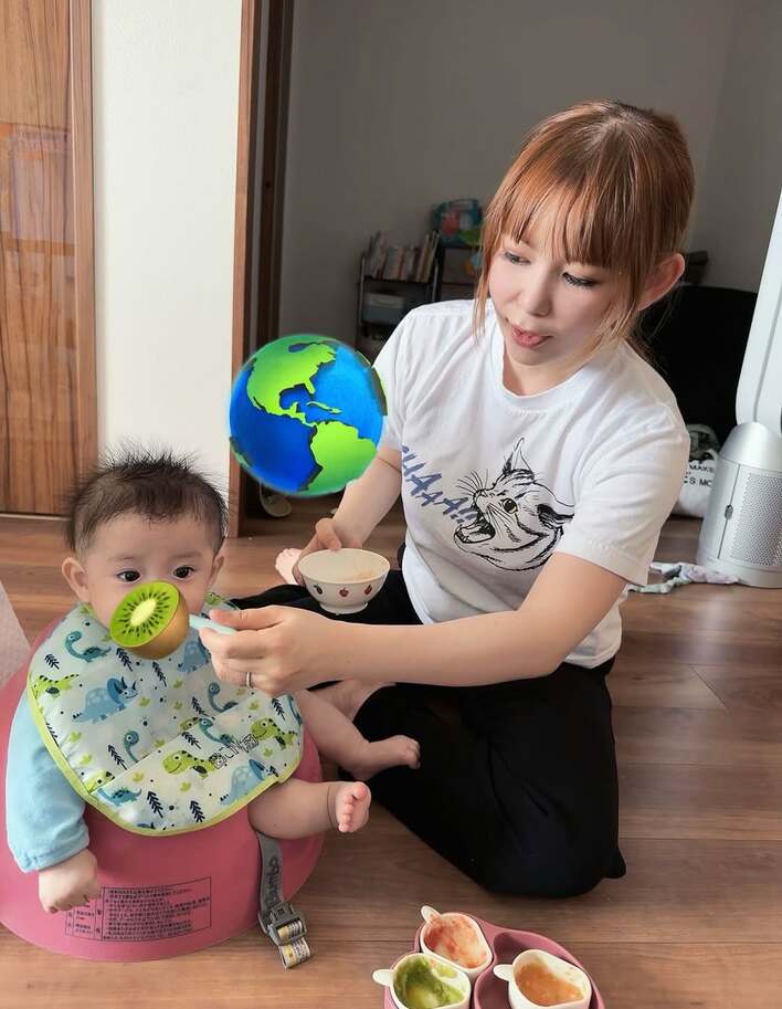 ベビーチェアに座り、中川さんから離乳食を食べさせてもらっている様子は、なんとも微笑ましく、ほっこりしますね。