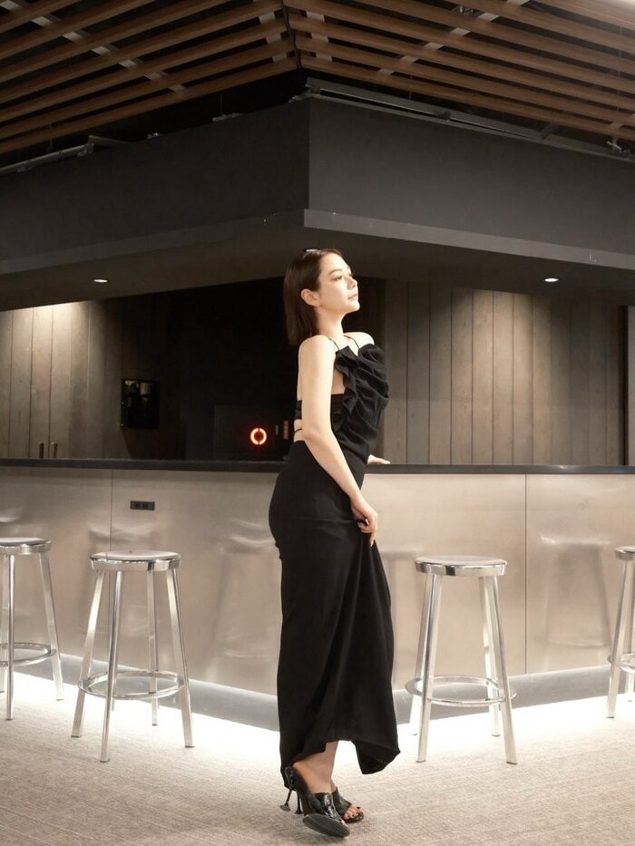 そんな村重さんですが、公開した写真の中には、タイトなシルエットで肌見せした黒いドレス姿も披露しています。