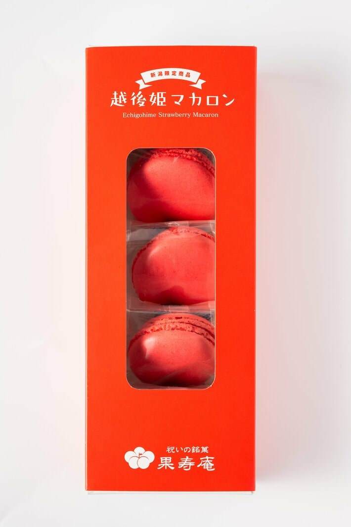 株式会社KAJUAN(本社:福島県福島市、代表:加藤公一郎)が展開する「祝いの銘菓 果寿庵」は、2026年3月25日(水)より、新潟県オリジナル品種のいちご“越後姫”を使用した「越後姫マカロン」を、CoCoLo新潟店限定で販売開始しました。設立1年で全国4店舗を展開する弊社が、観光客やビジネス客に向けて「新潟らしさを持ち帰る新しい体験」を提案。越後姫特有の強い甘みと香りを、視覚的にも美しいマカロンに閉じ込めています。