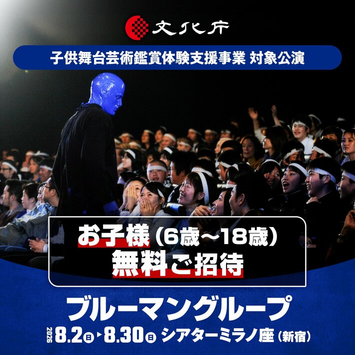 2026年8月に上演される『ブルーマングループ2026新宿公演』が、文化庁による「子供文化芸術活動支援事業」の対象公演として採択されました。
