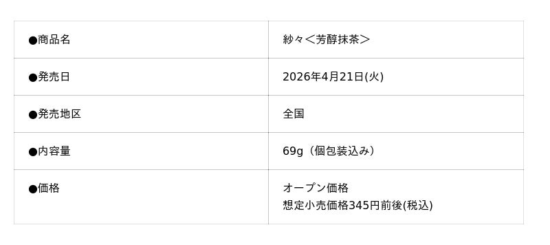 株式会社ロッテ(東京都新宿区、代表取締役社長執行役員:中島英樹、以下ロッテ)は、昨年30周年を迎え、約1.5mmの細い線を幾重にも織り重ねたデザインが特長の「紗々」ブランドより、紗々<芳醇抹茶>を4月21日(火)より発売します。紗々の抹茶フレーバーはこれまでも期間限定で販売してきましたが、お客様から「いつでも抹茶味の紗々がほしい」というご要望を多くいただき、このたび定番商品として発売いたします。また、世界中の方に紗々を楽しんでいただくために、まずは訪日外国人のお客様にも紗々を知っていただくきっかけとして紗々の持つ和の世界観×抹茶味で日本らしさを感じていただける商品に仕立てています。日本でしか味わえない本品の繊細さを、定番化を機にぜひお試しください。