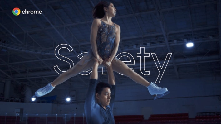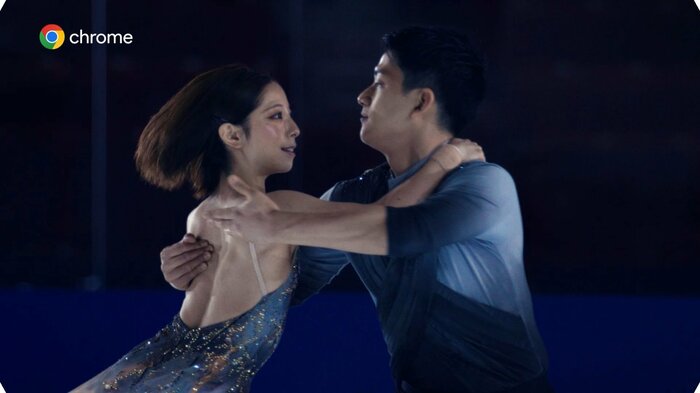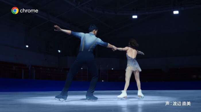 「ブラウザなら、Google Chrome|りくりゅう『No.1を支える』篇」でりくりゅうペアは、美しいペアスピンから始まり、高速で回転するツイストリフトを披露。氷上での圧巻のパフォーマンスが、CMならではのアングルで撮影されています。