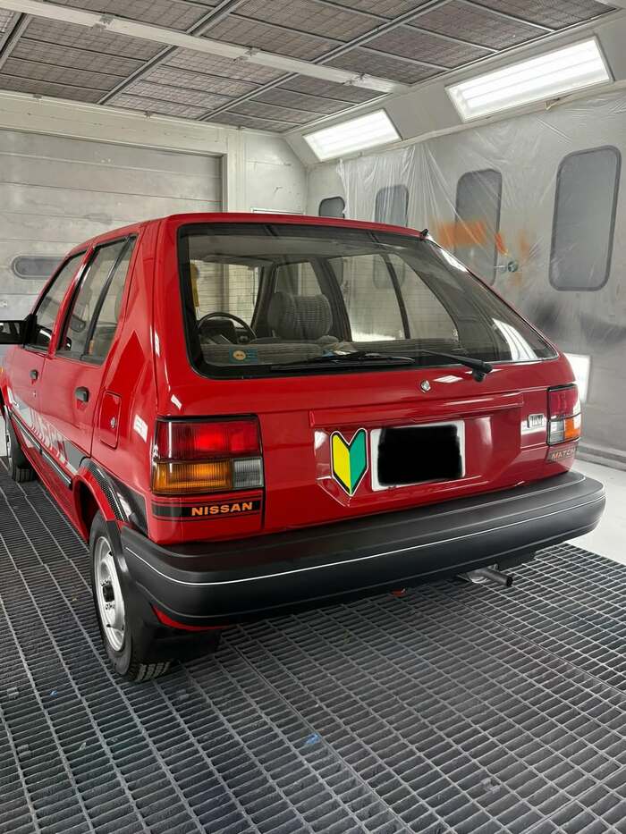 ですが、次の投稿では「やっぱりマッチのマーチからスタートですかね(笑)」とつづり、GT-R NISMOの代わりに用意したという初心者マークを付けた1984年式初代マーチを公開!