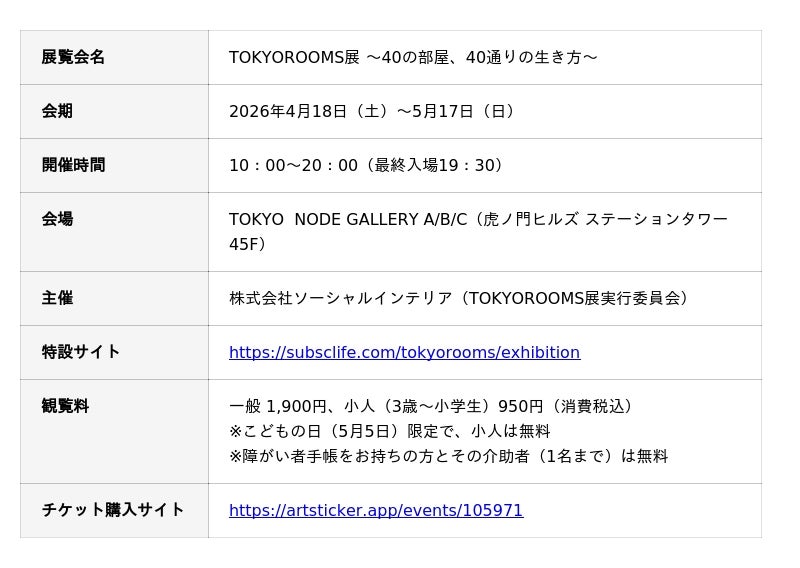 ● 「TOKYOROOMS展 ~40の部屋、40通りの生き方~」開催概要