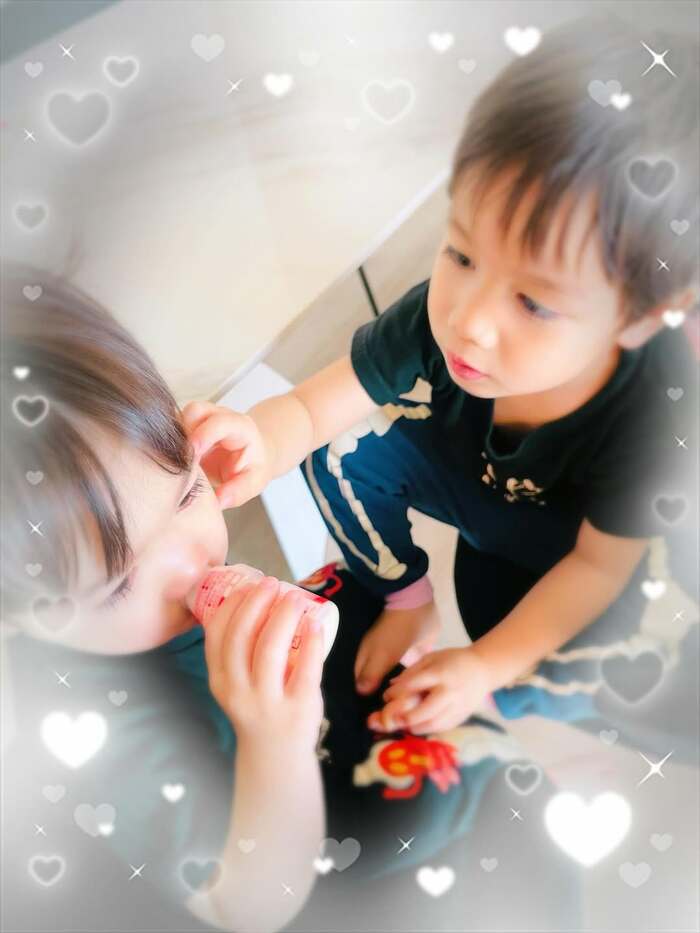 その様子をおさめた写真には、飲み物をゴクゴクと飲んでいる四男のそばでかがむ三男が頬に触れながら弟を見守る様子が写し出されており、その視線はまさにお兄ちゃんの表情!頼もしい子供たちの光景に思わず心が温かくなりますね。