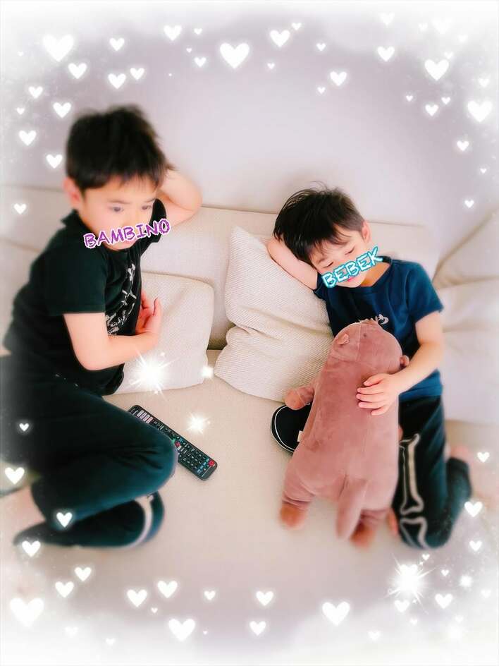 写真には、リビングのソファでくつろぎながら仲良くテレビを見ていた長男“バンビーノくん”と次男“ベベックくん”が映し出されていますが、2人は四男の元へ駆け寄ってくれたそう。