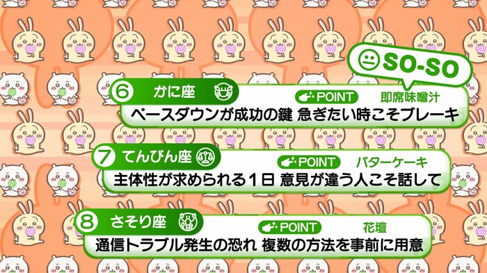 『めざましテレビ』で放送中の「ちいかわ占い」 テレビ放送がない日はお休みで、月~土:朝7時以降に更新予定です。