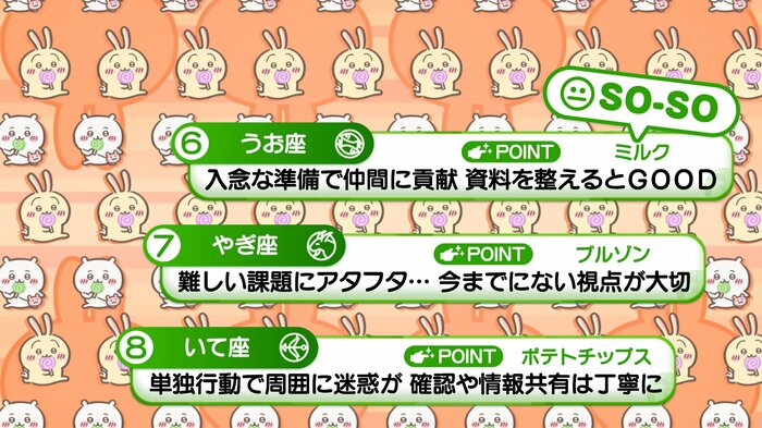 『めざましテレビ』で放送中の「ちいかわ占い」 テレビ放送がない日はお休みで、月~土:朝7時以降に更新予定です。