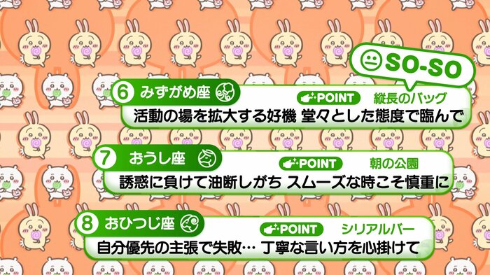 『めざましテレビ』で放送中の「ちいかわ占い」 テレビ放送がない日はお休みで、月~土:朝7時以降に更新予定です。