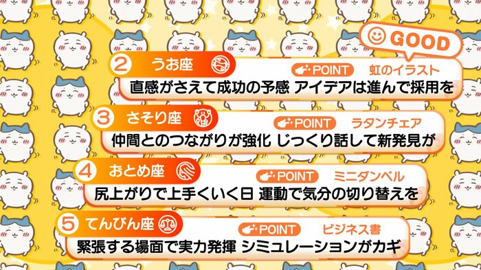 『めざましテレビ』で放送中の「ちいかわ占い」 テレビ放送がない日はお休みで、月~土:朝7時以降に更新予定です。