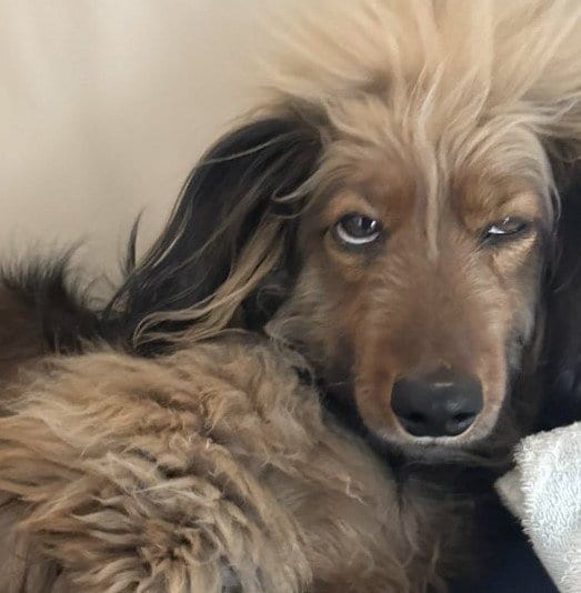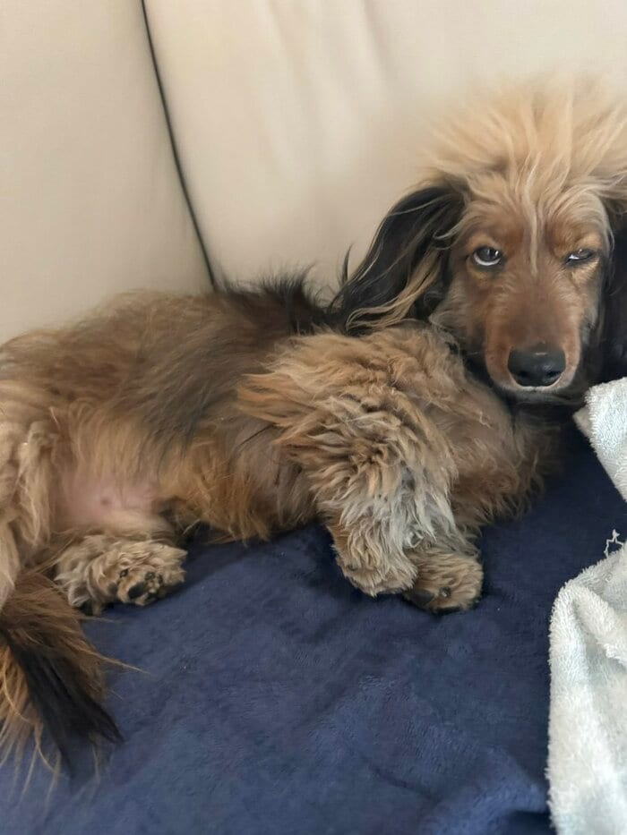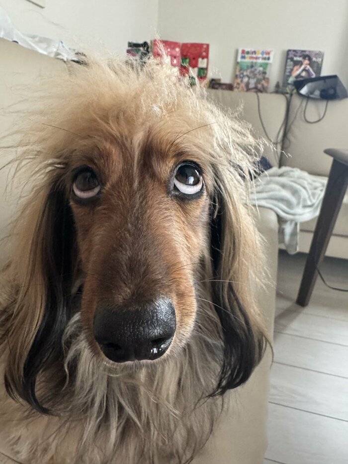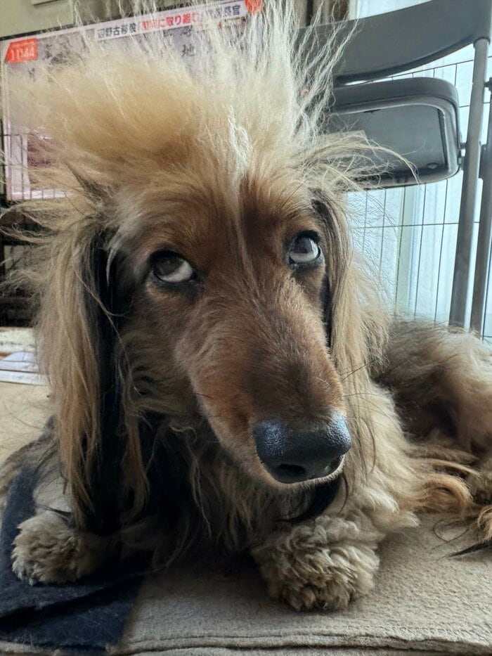 今回、反響を呼んだのは「私が大寝坊しましていつもよりかなり遅い時間に『散歩行こうよ』と言ったらこの顔 以後気をつけます…」とつづり、飼い主さんが撮影したショットです。