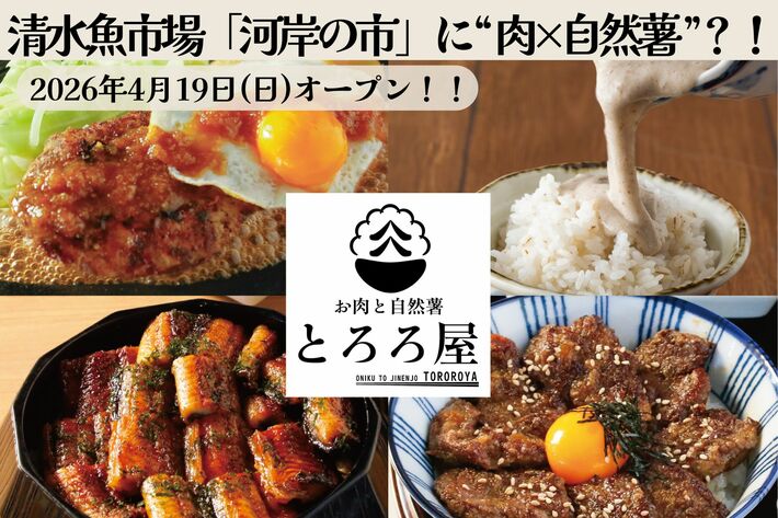 食に特化した事業承継プラットフォームを展開するまん福ホールディングスグループの静岡県内で「和ごはん とろろ屋」を展開する株式会社フード・フォレスト(本社:静岡県浜松市、代表取締役:九嶋広一、以下「フード・フォレスト」)は、2026年4月19日(日)、静岡市清水区の清水魚市場「河岸の市」いちば館2階に、新店舗『お肉と自然薯 とろろ屋』をオープンいたします。