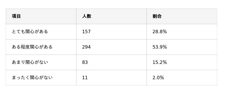 表1:サステナビリティや社会課題に対する関心の程度 n=545
