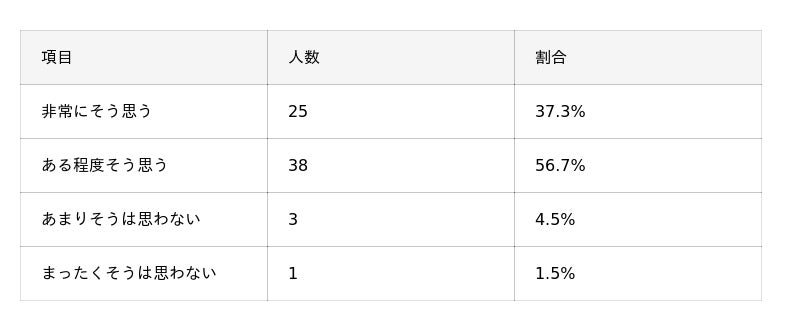これらの結果から、サステナビリティへの関心は主として教育を起点として形成されている一方で、実践機会の不足や社会・キャリアとの接続の弱さが課題として浮かび上がりました。