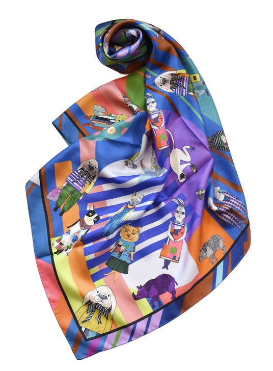 シルク素材の大判スカーフ。コーディネートのアクセントとしておすすめです。