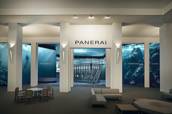 1935年にイタリア海軍からの要請で、初めてのプロフェッショナルダイバーズウォッチを完成させたパネライ。今年のWatches and Wondersでは、1966年にパネライによって設計され、COMSUBIN基地(Comando Raggruppamento Subacquei e Incursori)があるレ・グラツィエ(ラ・スペツィア、イタリア)に設置され、現在も使用されている訓練用タンクを、展示会場に再現しました。この設備は、イタリア海軍の特殊潜水部隊が水中での技術や装備の扱いを観察・改良するための制御された環境として機能します。透明なメタクリレートパネルを通して、教官が外から潜水隊員の動きを観察できるように設計されており、訓練をより安全で計測可能なものにしています。隣接するパネルをボルトで固定した軽合金フレームを使用しており、防水性を保つように作られています。また、外部階段でアクセスできる上部プラットフォームと内部アクセス用のはしごも備えています。単なる遺物とは異なり、これはブランドが海との持続的な関係を示す生きた証であり、その要素はブランドのアイデンティティを最初から形作ってきました。