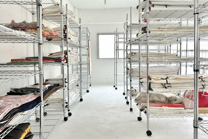 白を基調にした明るい店内は、閉鎖的な倉庫保管とは一線を画す、「着物のお世話」に相応しい場所として。