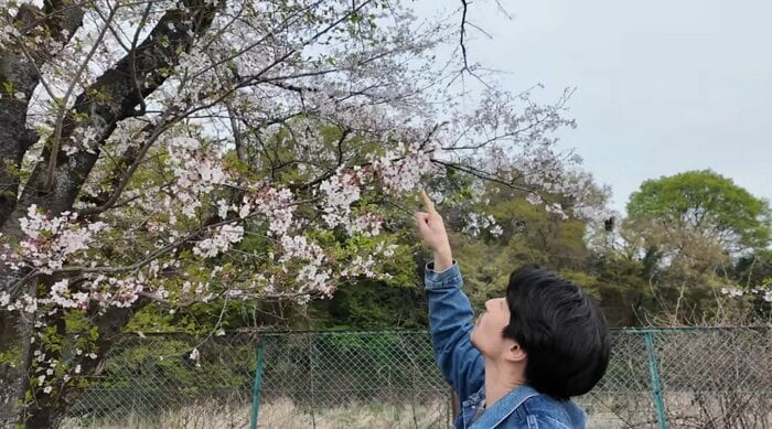 続いて、中尾さんは桜を見ながら散歩をすることに。中尾さんは途中立ち止まって桜の花をじっと見つめると、「1個1個もきれい」と、桜の美しさにうっとり。温かく穏やかな空気に包まれていて、ほっこり癒やされます。