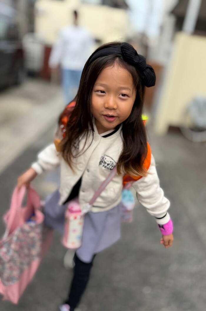 2026年4月9日には、6歳の長女・こうめちゃんが小学校に入学したことを報告し、「入学式」の立て看板の横に並んだ記念ショットを公開。ピンク色のワンピースを着たこうめちゃんは、オレンジ色のランドセルを背負ってニコニコの笑顔を浮かべています。