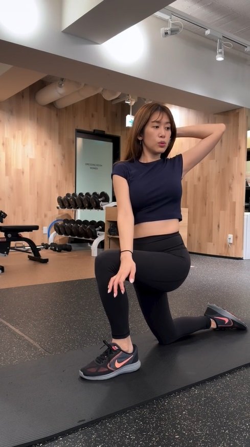 続いて、同じく片膝立ちのまま上半身をひねる動き。