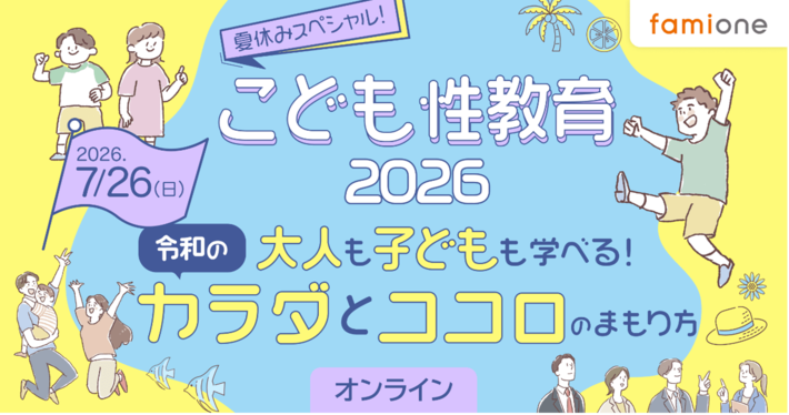 「子どもを願うすべての人によりそい 幸せな人生を歩める社会をつくる」をビジョンに掲げ、法人の従業員向け福利厚生や自治体の住民向け支援を行うヘルスケアサポートサービス「ファミワン」 https://famione.com/benefit/ などを展開する株式会社ファミワン(本社:東京都渋谷区、代表取締役:石川 勇介)は、オンラインイベント、『夏休みスペシャル!こども性教育2026 大人も子どもも学べる!令和の「カラダとココロのまもり方」』を2026年7月26日(日)に開催します。
