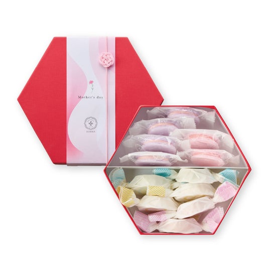 春らしい彩りのふやきにクリームをサンドした“彩ふわり”、 お口に入れるとほろほろ溶ける“春のクッキー(ポルボロン)”を詰め合わせました。華やかな味わいが母の日の贈りものにぴったりです。