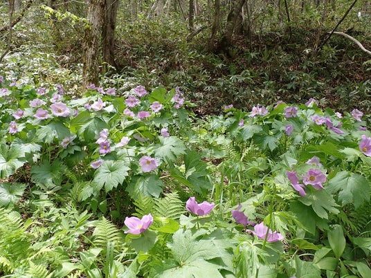 森の情報館から徒歩10分ほどのところにある「シラネアオイの小径」では毎年500本以上の花が見られ、エリア全体で1,500本ほどの花を見ることができます。