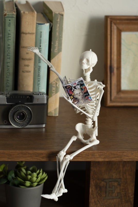 肩、ひじ、ひざなどの関節を動かして、ポーズをとらせることができます。自分も同じポーズに挑戦することで、骨の動きが実感できます。座らせて飾ってもかわいいです。