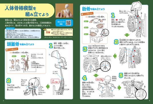 ひとつひとつの骨のパーツを観察しながら手順に沿って骨格模型を組み立てることで、骨の形や構造が、立体的に理解できます。