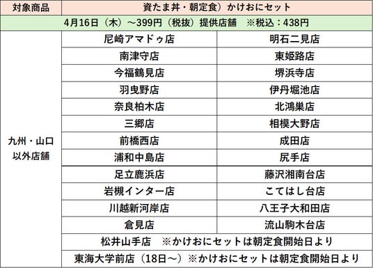 【資たま丼・かけおに(※朝限定)実施店舗一覧】