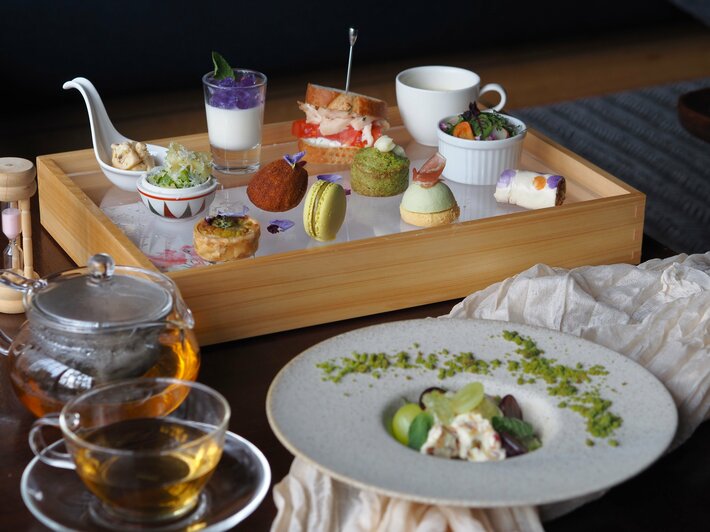 さらに、「ほうれん草とベーコンのキッシュ」や、心まで温まる「ジャガイモのポタージュ」など、一口サイズで食べやすいセイボリーを豊富にご用意。カフェ利用はもちろん、お食事としてもご満足いただける構成に仕上げました。