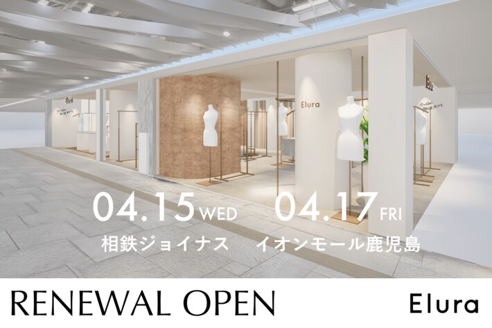 “Play fashion!”をミッションに掲げるアンドエスティHDグループで、40以上のマルチブランドを展開する株式会社アダストリア(本部:東京都渋谷区渋谷2-21-1、代表取締役社長:北村 嘉輝)の“大人女性の悩みに効く”をコンセプトとするブランドElura(エルーラ)は、2026年4月15日(水)に相鉄ジョイナス店、4月17日(金)にイオンモール鹿児島店をリニューアルオープンいたします。リニューアルオープンを記念して、Elura名品のサラサラタッチニットシリーズから、新作の『サラサラタッチタックプルオーバー』を2店舗限定で販売いたします。また、and ST会員のお客様さま限定で、お買い上げ金額より10%OFFにてお得にお買い物いただけるキャンペーンも実施いたします。