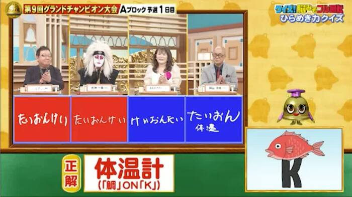 正解は「体温計(『鯛』ON『K』)」。ノブさんと氏神さんが正解です。