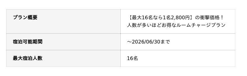最大40%OFFのグループ割や人数が多いほどお得なルームチャージプランも販売中