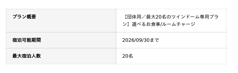 現在、グループ旅行にぴったりの最大20名まで宿泊が可能な選べるお食事プランを販売中。