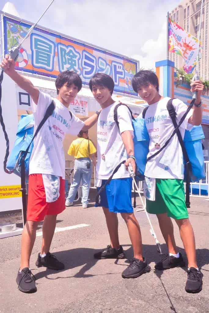 現在、お台場・フジテレビで開催中(~8月27日)の「お台場冒険王2023」では、冷たいミストと笑顔で観客をもてなすミストマンとして3人一緒に活動中。
