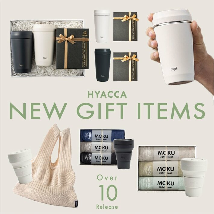 コーヒーショップでのマイカップ持参やリユース容器の利用が日常の風景として定着しつつある昨今、タンブラーは単なるエコや節約のための実用品から、使う人の価値観や自分らしさを映し出す「ライフスタイルアイテム」へと変化しています。一方で、ギフトシーンにおいては「どれを選べばいいかわからない」「実用品は贈り物として少し物足りない」という声も少なくありません。HYACCAは、こうした"持ち歩き文化"の広がりに着目し、海外で高い支持を得ている注目ブランドのタンブラーを主役に、それらと相性の良い国内の上質なアイテムを掛け合わせたギフトボックスを企画しました。ポケットに収まる折りたたみタイプから、香りまで楽しめる密閉タイプまで、使う人の一日に自然と溶け込み、受け取った瞬間からすぐに使いたくなる、新しい時代の"贈る実用品"を提案します。