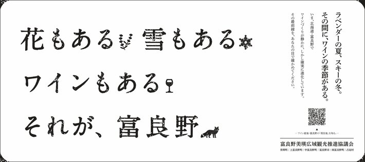 花や雪に加え、ワイン産地としての富良野の魅力をより多くの人に伝えるために制作した新聞広告ビジュアル