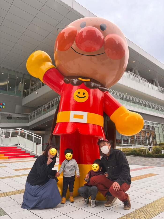 そして今回の投稿では「次男の要望でアンパンマンミュージアムへ」とつづり、家族4人でお出かけした様子を公開。