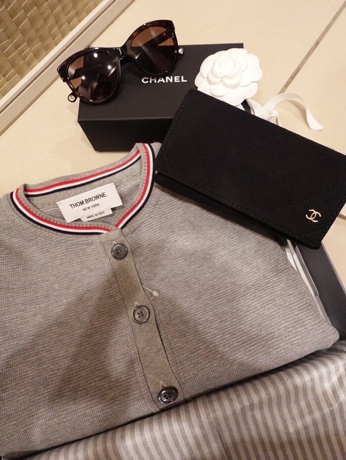 トムブラウンのカーディガン、シャネルのメガネや財布など、豪華なアイテムがずらり!
