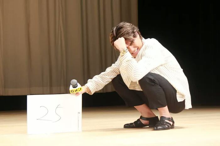 りんたろー。さんは、「すごい!身を切っている。あなたジャニーズですよね!?」とツッコミ、会場は爆笑。