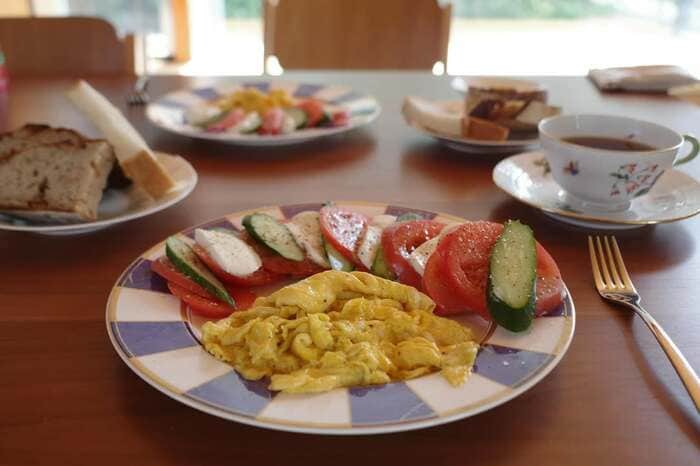 さらに、ストライプ柄のお皿に盛り付けられたおしゃれご飯も公開。卵焼きやカプレーゼ、良い香りが漂ってきそうなパンなど、思わずおなかが空いてきてしまいます。