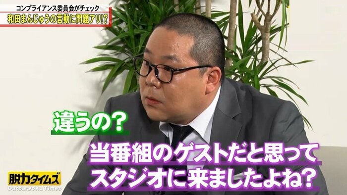 「コンプライアンス委員会」で、ヒコロヒーさんから「ゲスト候補が3人いたが、全員NGになったので、仕方なく和田さんが呼ばれた」という仕掛けが明かされると、和田さんはぼう然。